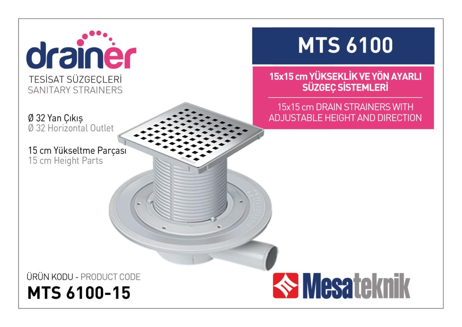 Alttan Çıkışlı Sistemler 50 mm Çap Yükseklik 15 cm Izgara 15 cm