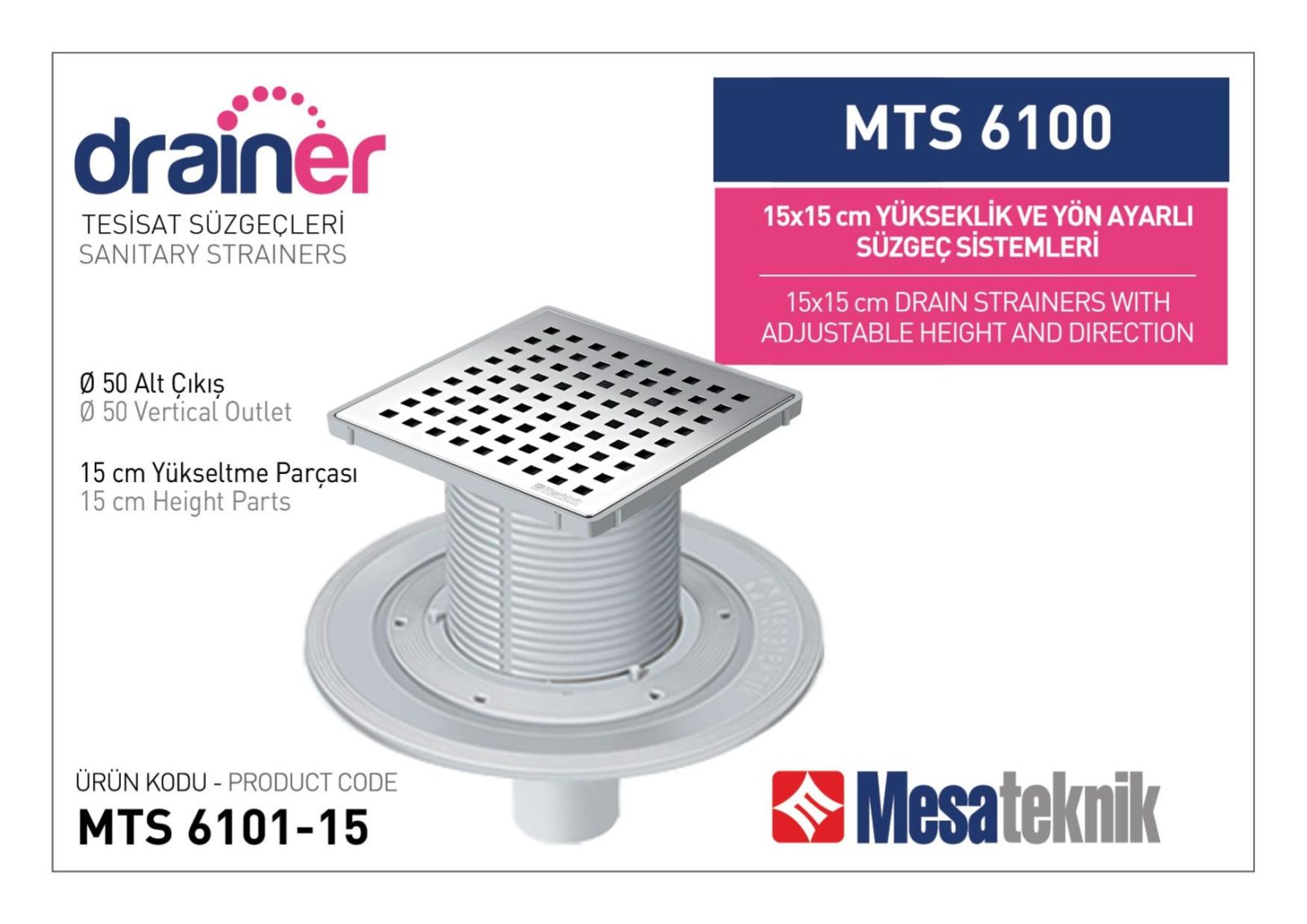 Alttan Çıkışlı Sistemler 70 mm Çap Yükseklik 15 cm Izgara 15 cm