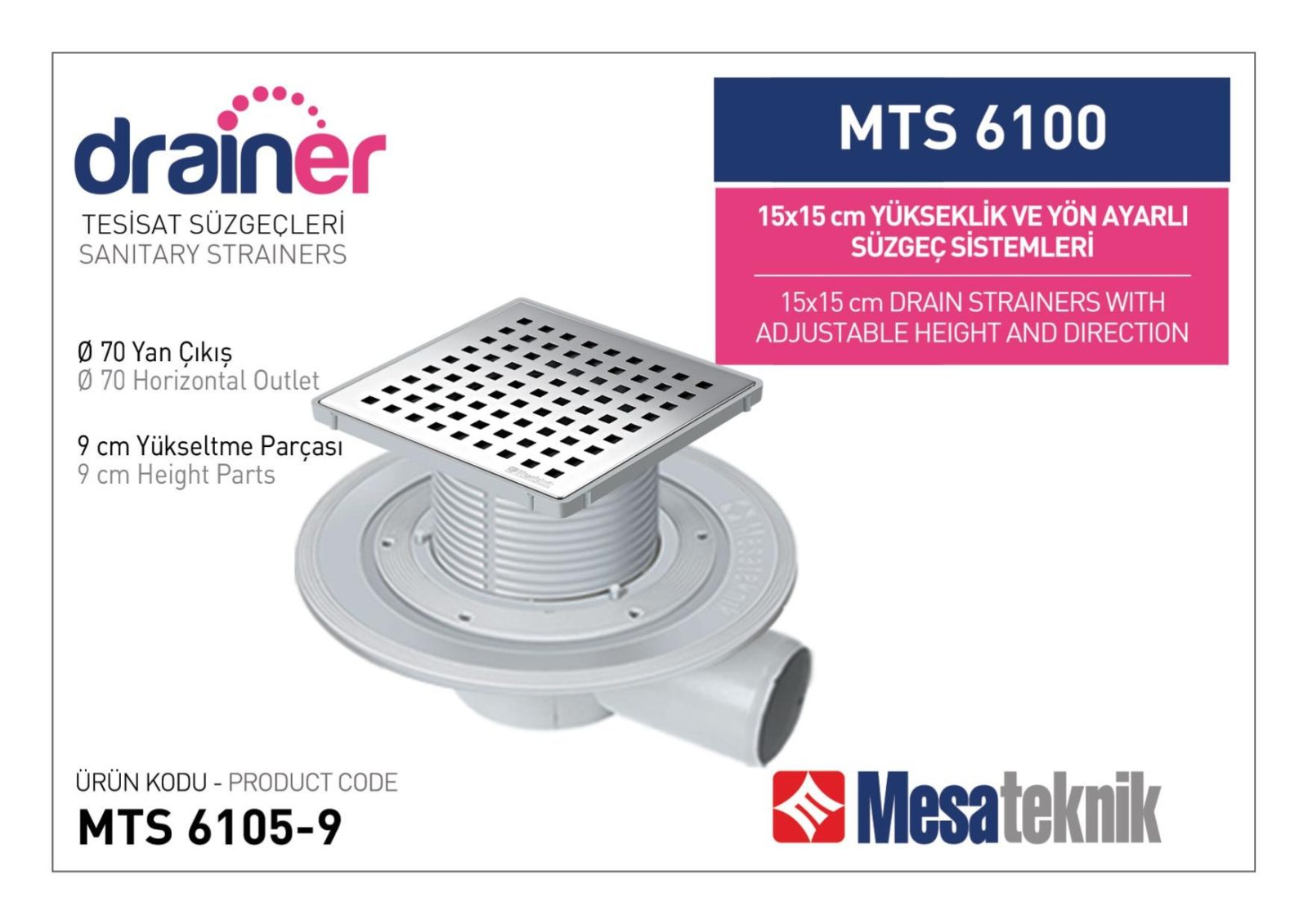 Yandan Çıkışlı Sistemler 70 mm Çap Yükseklik 9 cm Izgara 15 cm